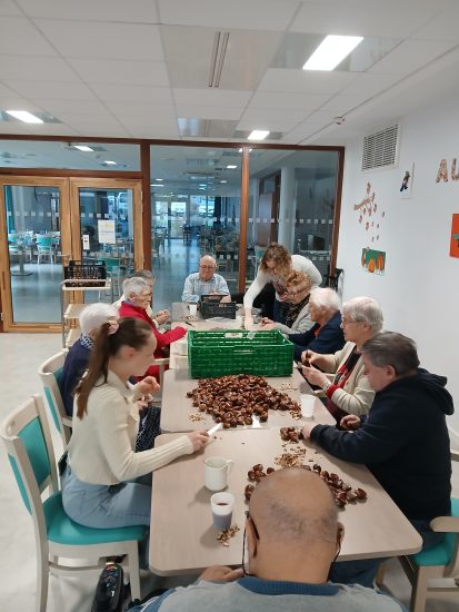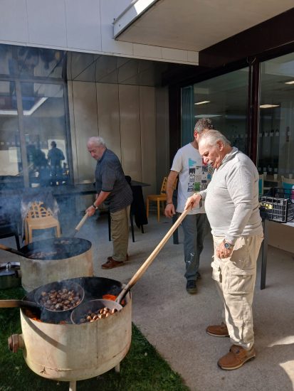 Les châtaignes sont toujours grillées, puis les bénévoles, résidents et salariés s’occupent de les décortiquer (et de les manger au passage :)). Un vrai travail d’équipe ! Tout le monde attend la prochaine édition avec impatience.