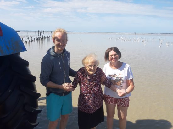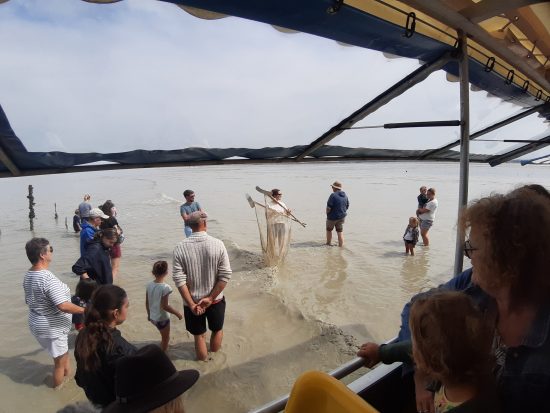 Ils ont pu profiter d’une balade de 2h, à bord d’un « train marin », avec en guise de locomotive un tracteur agricole. Le tout à 5km du rivage, afin de découvrir les pêches traditionnelles et le métier de mytiliculteur (éleveur de moules).