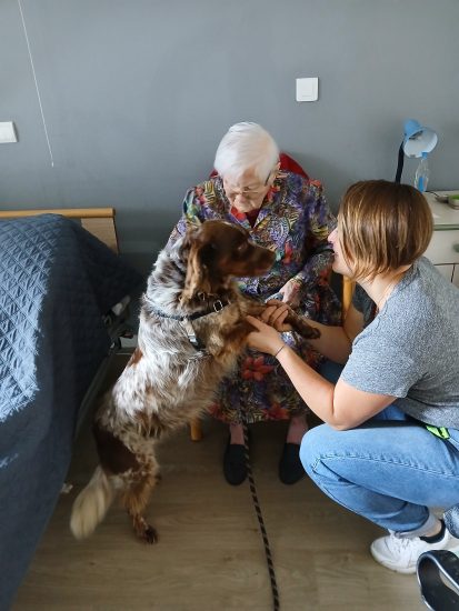 Lorsqu’il n’y a pas de grandes animations, Paco passe la journée du vendredi au sein de l’EHPAD et favorise notamment la communication verbale et non verbale, l’apaisement, le réconfort. Des exercices simples de motricité sont réalisés par le résident (caresses, donner une friandise etc). Les bienfaits sont très nombreux et ne sont plus à prouver.