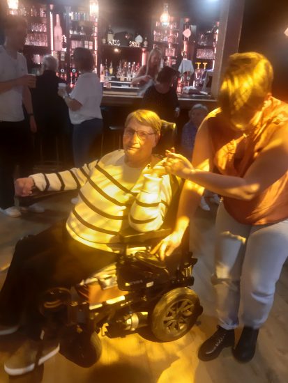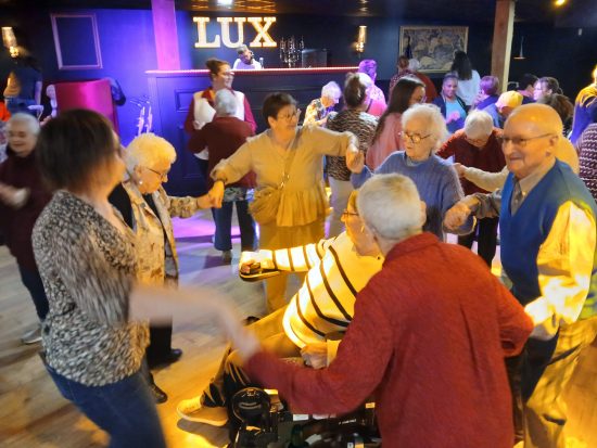 Ambiance en discothèque pour nos résidents, ce 14 Novembre, au Gossip à Vitré. Ils étaient une centaine, venus de plusieurs établissements, pour profiter de ce moment convivial. Pour l’occasion et comme ces deux dernières années, la discothèque a ouvert ses portes en après-midi. Lumière tamisée, musique à un volume sonore adapté. Durant un peu plus de 2 heures, diverses danses au programme, de la bonne humeur, des retrouvailles, des premières fois.